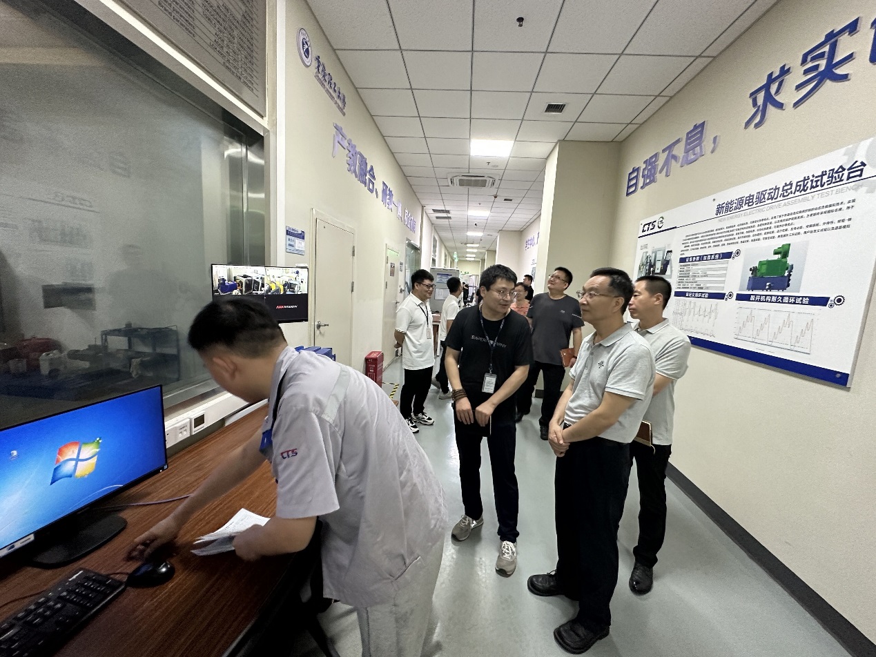 重庆清研理工汽车检测服务有限公司实验室经理朵伟和销售工程师覃永波等对副校长刘成俊一行的到来表示热烈的欢迎,并在经理朵伟和销售工程师覃永波等的陪同下,实地参观了公司的各类实验设备并对各类实验设备进行了详细讲解。
