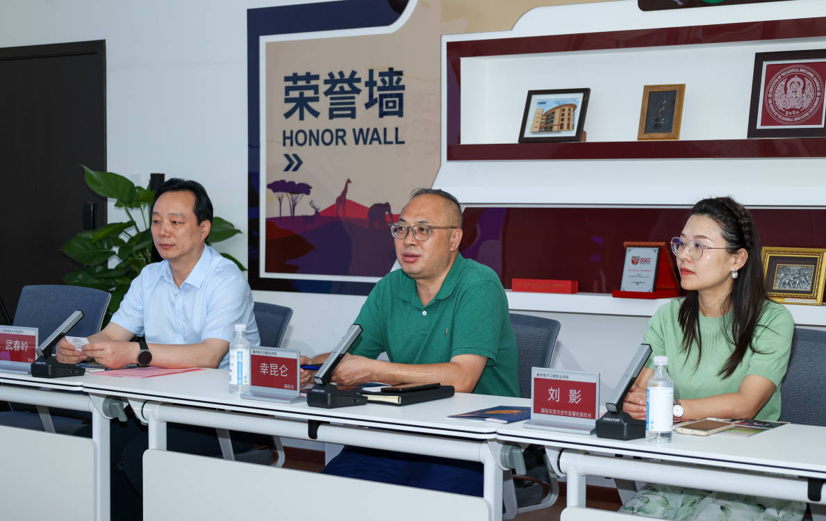 英方一行首先来到人工智能与大数据学院、电子与物联网学院世赛基地等场所参观,随后双方前往中非(重庆)职业教育交流中心就国际合作、学生互访、教师培训等进行交流。