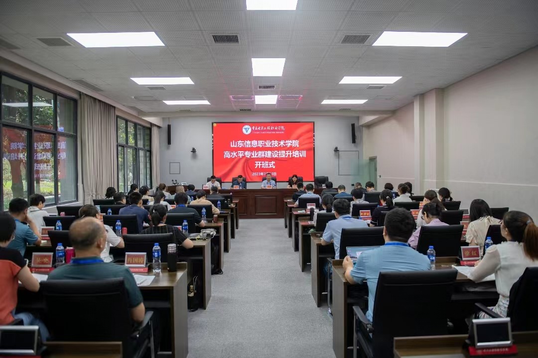 2023年7月13日上午,山东信息职业技术学院高水平专业群建设提升培训开班式在我校国培基地博学厅举行,山东信息职业技术学院副院长朱连庆,教育部国培(重电)基地办主任、重电职教师资培训学院书记兼院长莫绍强以及山东信息职业技术学院的40名教师参加开班式,开班仪式由重电培训与继续教育学院蔺朝莉科长主持。