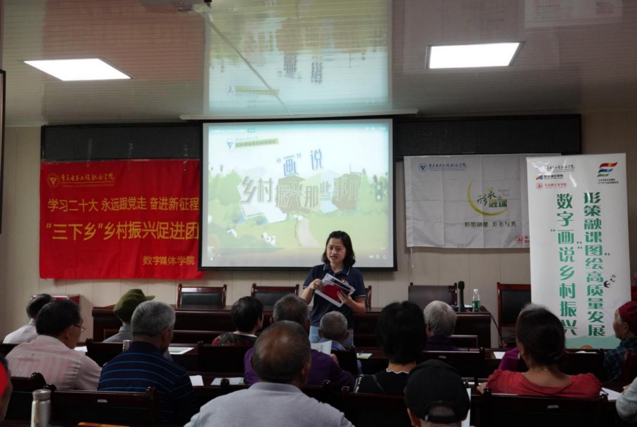 近日,重庆电子工程职业学院马克思主义学院思政第三党支部和数字媒体学院“三下乡”社会实践活动团队党员师生代表前往“云端米乡”——巴南区石滩镇石滩河社区党群服务中心,与当地党员群众围绕当地稻田文化,通过开展粮食安全政策宣讲,用技术技能惠农育农,服务村民办实事,将多方位助力乡村振兴落到实处,打出了党建带团建,“三下乡+大思政”协同共育的组合拳。