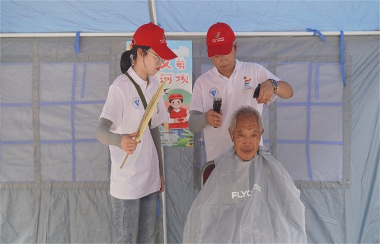 7月6日,重电“红鹰”乡村振兴促进团开展“从‘头’开始,从‘心’出发”爱心义剪活动。志愿者们在村委会设立爱心义剪点,免费为村里老人剪发、染发,为村内留守老人带来生活上的便利和情感上的温暖,让他们感受到关爱就在身边,关心就在眼前。