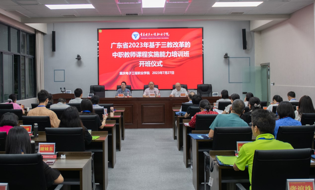 2023年7月27日上午,广东省2023年基于“三教改革”的中职专业课教师课程实施能力升培训在我校国培基地博学厅举行,广东科学技术职业学院党委委员、继续教育学院院长、研究员袁晓斌,我校培训与继续教育学院副院长李晓斌,培训科负责人王科以及来至广东科学技术职业学院的48名教师参加了开班仪式,仪式由王科科长主持。