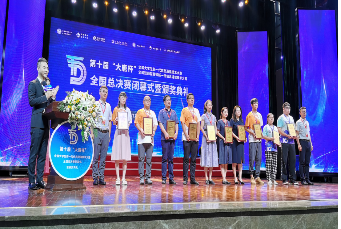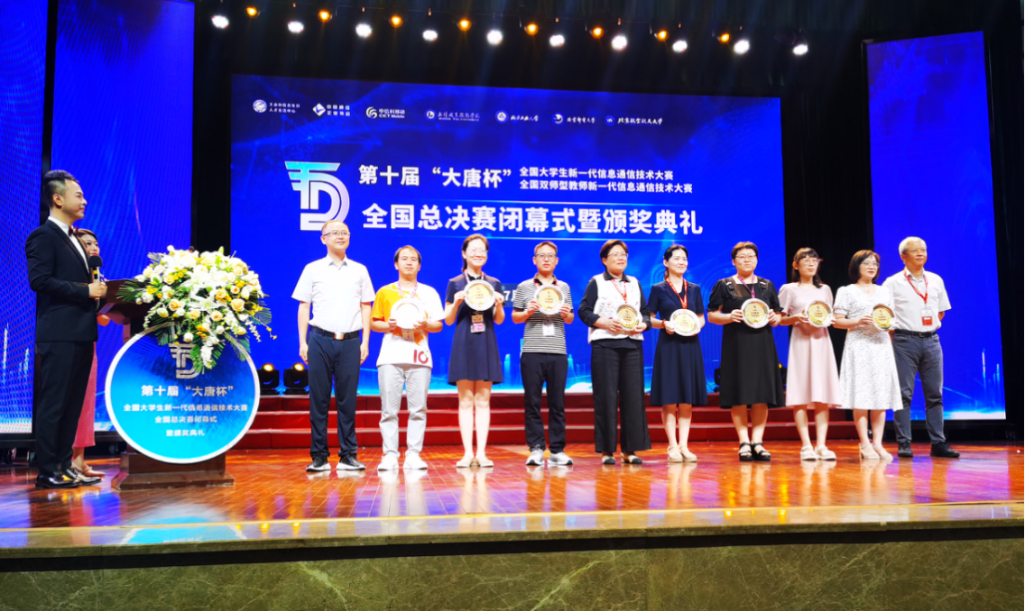 至此大唐杯10周年之际,大赛以推广信息通信前沿技术、协同高校学科建设、推动行业创新发展为目的,旨在激发高校学生参赛热情,提升5G技术理论与工程实践创新能力,推进高校“双一流”及“双高”建设,促进电子信息类相关专业教学内容和教学方法的改革创新,推动5G+垂直产业应用创新,促进高校5G相关技术的研究和成果转化,助力电子信息类专业高质量发展。本届“大唐杯”比赛共吸引了来自包括哈尔滨工业大学、北京邮电大学、电子科技大学、北京航空航天大学、深圳职业技术大学、南京工业工业职业技术大学、重庆电子工程职业学院在内的500余所高校的3.5万余名学生和400余名老师参赛,比赛规模和参赛热度空前。在颁奖仪式上,还对10年以来热爱大唐杯、对大唐杯大力支持的个人进行了表彰,通信工程学院陶亚雄院长获得10年特别贡献奖。