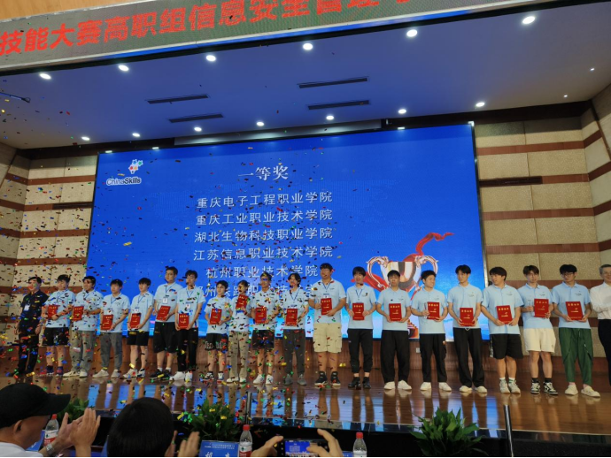 8月20日至21日,2023年全国职业院校技能大赛高职组“信息安全管理与评估”赛项在重庆工业职业技术学院成功举办。来自全国32个省、直辖市、自治区的62支参赛队伍同台竞技,经过两天的激烈角逐,我校人工智能与大数据学院鲁先志、何倩两位老师的指导的税一卫、刘满、杨青山三名同学,获得团体一等奖,全国第一名的优异成绩。