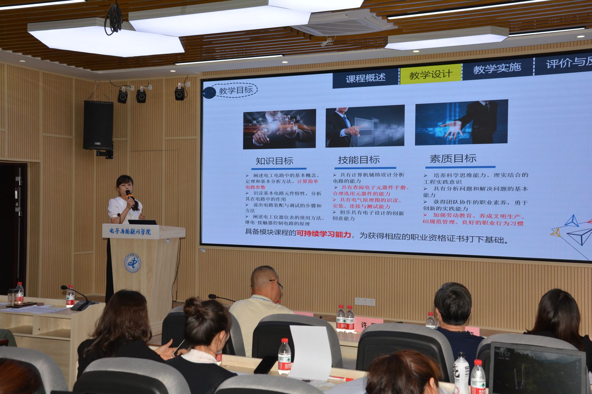 冉学农副校长表示,教学竞赛是高校建功立业劳动竞赛的一种主要形式,是提升教职工主动性、积极性以及创造性的有效途径。近年来,校工会积极联动,与职能部门、各二级学院举行各项赛事,鼓励教师积极参与,在提升广大教职工专业技术水平和社会服务能力方面成效显著。此次,工会与电子与物联网学院联合举办说课比赛,旨在持续推进学院的课程改革,引导教师深入钻研教育教学方法,促进学院教师的专业发展,不断提高教师教学技艺,助力学校发展。