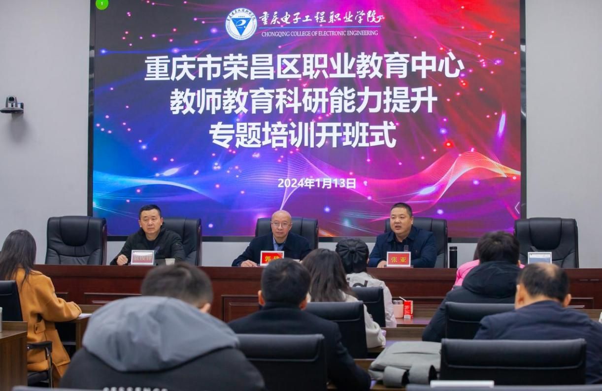 1月13日,由重庆市荣昌区职业教育中心主办,我校承办的重庆市荣昌区职业教育中心教师教育科研能力提升专题培训在国培基地博学厅开班,重庆市荣昌区职业教育中心副校长郭建,以及来自该校的30名骨干教师参加开班式。开班式由基地办副主任张亚主持。