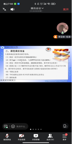 为提升新学期兼职教师的教学质量,规范教学运行,明确教学质量要求,加强教室设备规范使用,2024年2月23日,智慧健康学院副院长李卉博士在线主持召开了2023-2024学年第二学期兼职教师培训会议,全体兼职教师、各系主任及教学与课程思政管理科全体成员参会。