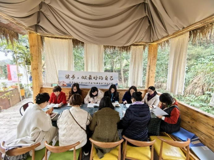 随后,分工会组织了“玫瑰书香”阅读活动,主题为“读书,做最好的自己”。在此次主题阅读活动中,分工会特别为女职工们准备了一批精选的书籍和舒适的阅读环境。女职工们纷纷挑选自己感兴趣的书籍,沉浸在书的世界中。活动现场,除了自由阅读,大家还一起朗读了《做最好的自己》、《用生命影响生命》、《百合花》等文章,通过阅读、分享、讨论等环节,大家畅谈着自己的所思、所想、所感、所悟。从书本中引申到实际,从篇章里讨论到生活,女职工们分享着读书的乐趣和阅读时的感悟与收获,阵阵书香浸润心田。阅读活动不仅提升大家的文化素养,还可以让人宁心静气,激发大家的思考和共鸣,增强工会组织的文化氛围。