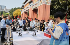 在本次活动中,智慧健康学院机器人科普基地、萤火虫志愿服务队在重庆市科技局科技安全展区,展示了自主开发的全向移动对战机器人、轮式格斗机器人、异形足格斗机器人、视觉识别工程机器人、越障机器人等作品,观众互动体验了人形教育机器人、对战机器人的操控。同时在人和街小学国家安全教育进课堂展区,陈彦老师与AI服务机器人协作完成了国家安全进行课堂展示课,引导孩子们从小树立科技安全意识,从小绷紧“安全弦”,在一颗颗小小的心中筑起国家安全的长城。
