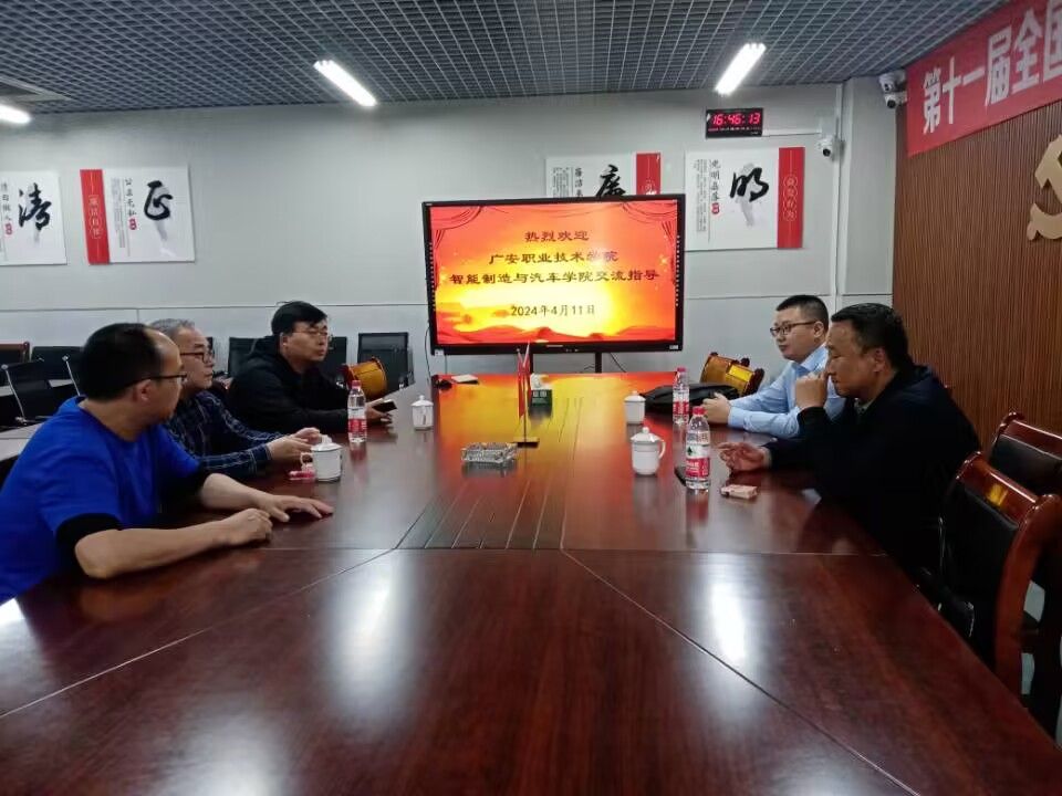 广安职业技术学院智能制造与汽车工程学院院长李俊鸿对我校智能制造与汽车学院的热情接待表示感谢,希望通过此次调研交流,学习先进经验和做法,进一步加强两校之间在高水平专业群建设、产教融合、数字化、智能化能力培养等方面的合作交流,实现双方共赢发展。