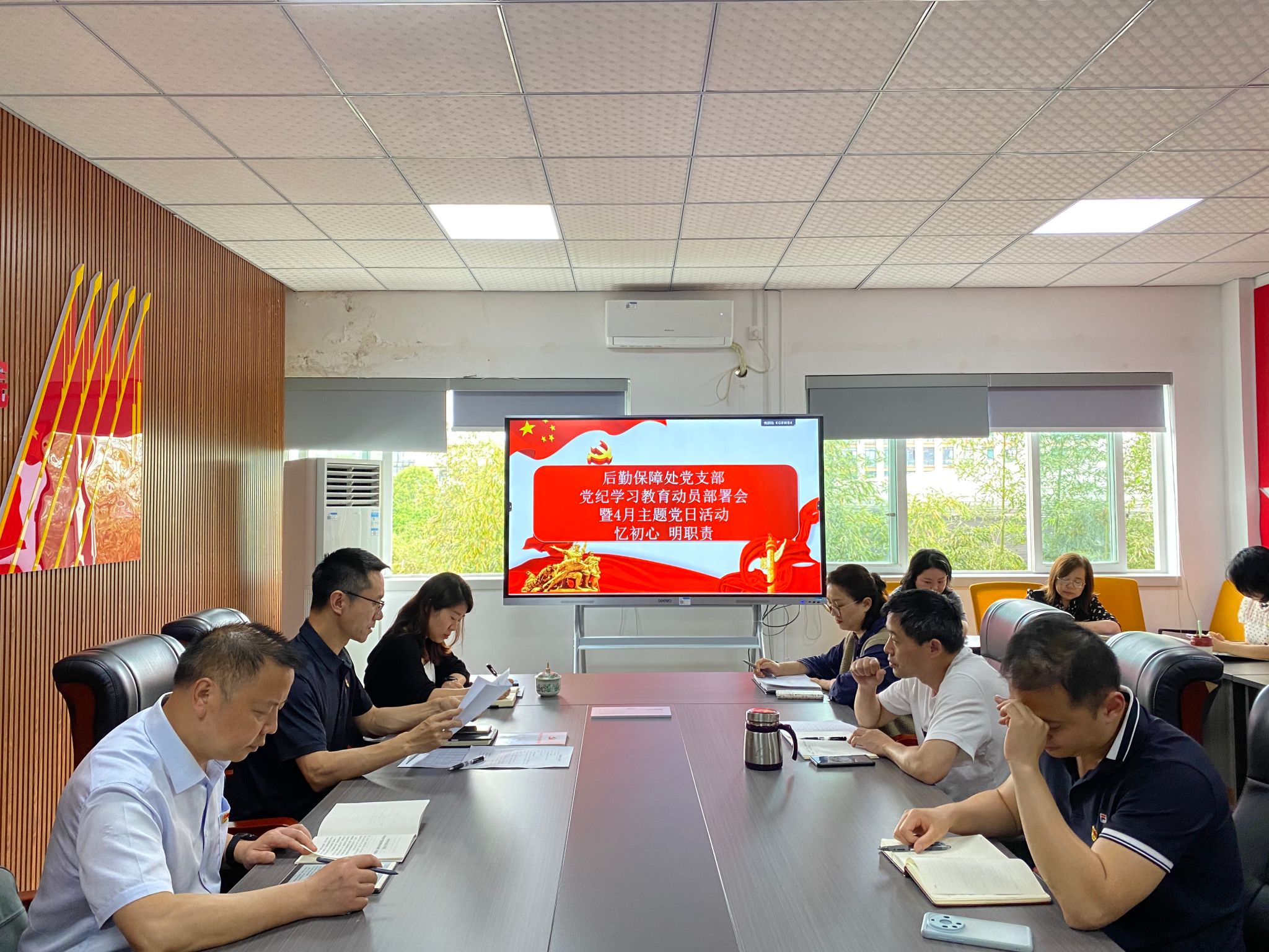2024年4月18日下午,后勤保障处党支部开展党纪学习教育动员部署会暨4月主题党日活动,会议主题为“忆初心 明职责”。后勤保障处党支部书记朱强同志主持会议。