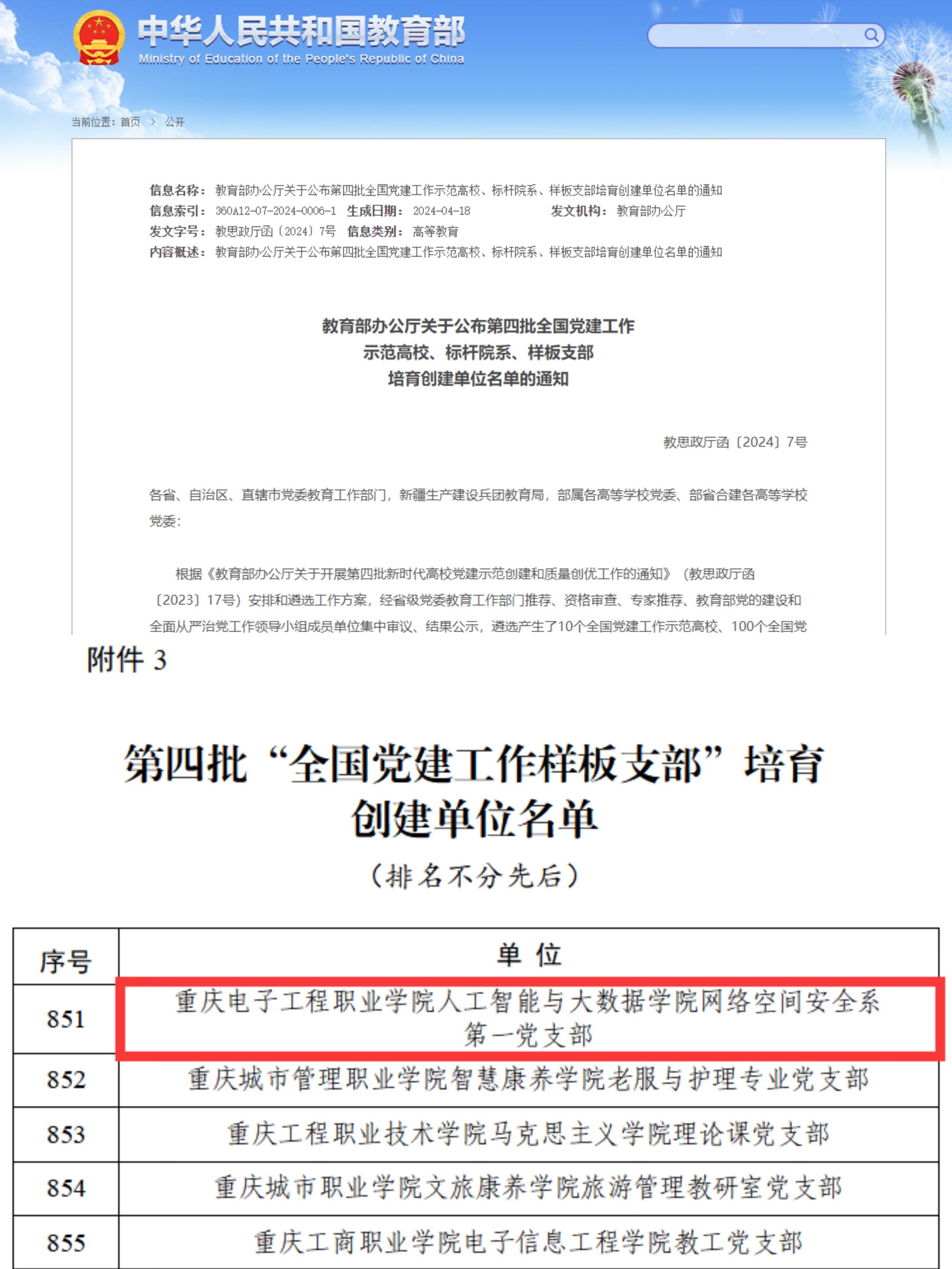 近日,教育部公布了第四批全国党建工作示范高校、标杆院系、样板支部培育创建单位名单,我校人工智能与大数据学院网络空间安全系第一党支部成功入选第四批“全国党建工作样板支部”培育创建单位。