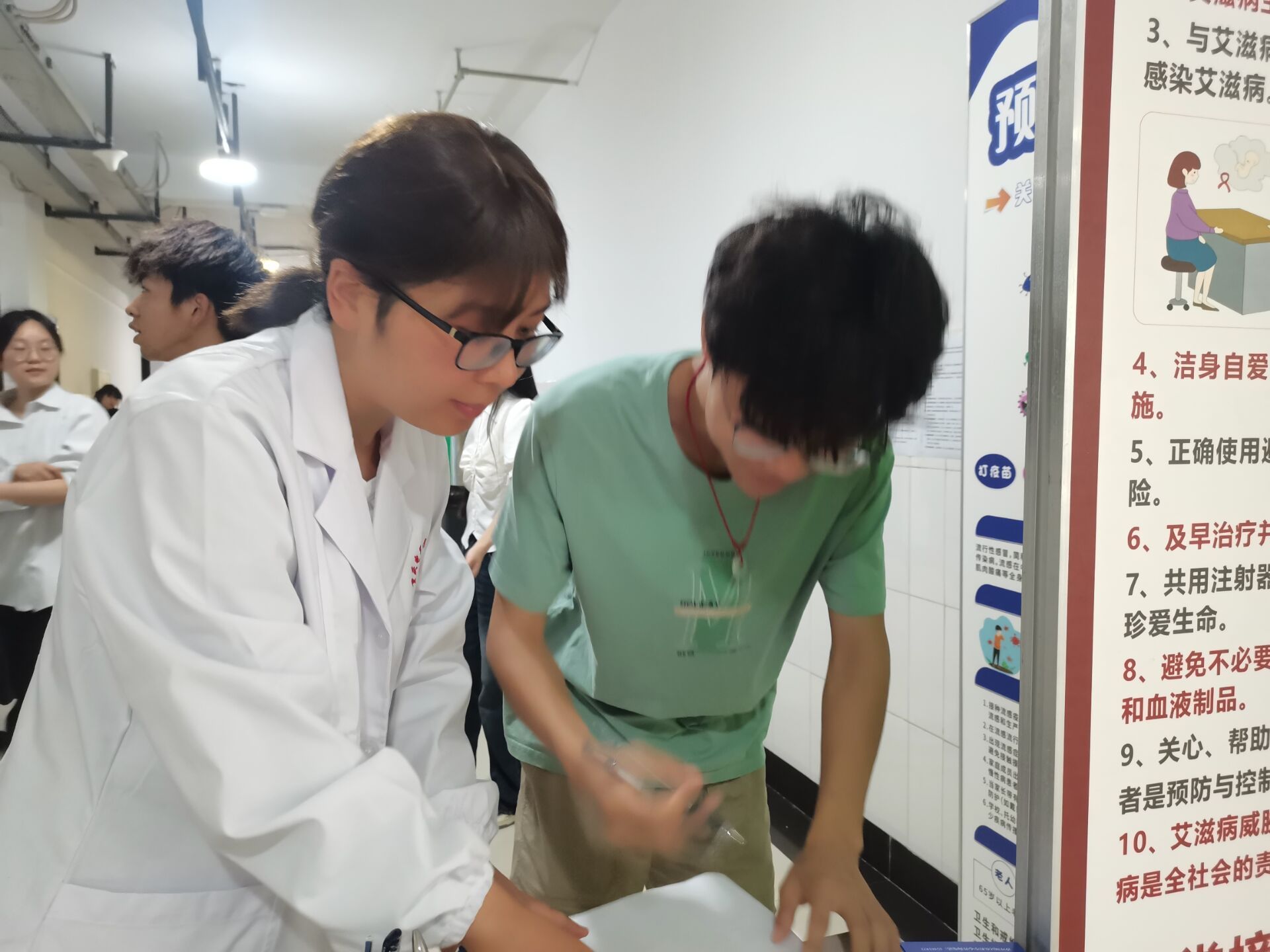 5月8日,按沙坪坝区疾病预防控制中心相关要求,后勤保障处与财经管理学院、陈家桥医院合作,在校卫生科开展2024年青年学生哨点监测,遵照整群抽样原则,对抽取班级内的学生以匿名的形式进行艾滋、梅毒、丙肝监测调查。医务人员向活动现场的学生普及调查目的、意义和保密原则,现场井然有序,无1人拒访,共计完成164人问卷调查及采血样。