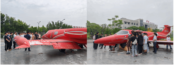 在航空科普教育环节,由专业教师带领大家观看航空科普基地的中的里尔24公务机等,了解航空相关知识、飞机维修工程相关实训项目等。
