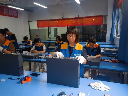 本次生产性实践项目针对5G系统技术和5G基站生产和装调,采用真实项目、真实设备、真实操作、真实过程、真实考核的方式进行,按照项目团队将学生分成了项目经理、装配工程师、测试工程师三种类型,现场布置了组装区、系统测试区、交付测试区三个区域,全面按照商用5G基站的生产方式进行,以培养“精操作、懂工艺、会管理、善协作、能创新”的高素质技术技能人才。