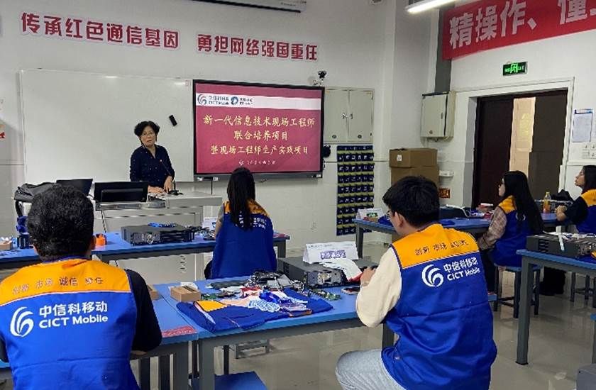 中信科移动公司的派遣了4名一线工程师与学院的教师联合开展了5G移动通信基站的硬件安装、软件烧录以及运行维护等操作,尤其注重实战技能的培养。学生们展示出极高的学习热情和实践能力,培训期间频繁向工程师和老师们询问技术应用与职业发展相关的问题,现场气氛热烈,参培学生纷纷表示受益匪浅。