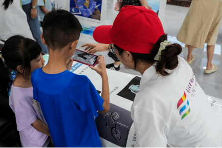 (志愿者江鑫指导青少年使用数字AR)
