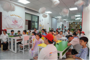 志愿者周俊林化身“VR引路人”,讲解了VR技术如何穿越时间、空间,突破物理的桎梏,引领“数字小侠”们步入一个虚拟的数字奇境。在课堂上,志愿者周俊林从VR的交互性、沉浸性与构想性等方面分别向大家讲述了虚拟现实技术对人类生活、工作、娱乐、科研、教育、医疗等方面的促进与融合。让“数字小侠”们意识到可以运用虚拟现实技术连接过去与未来,实现传承与创新。