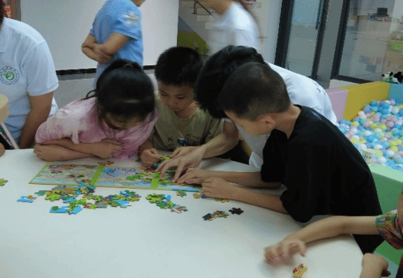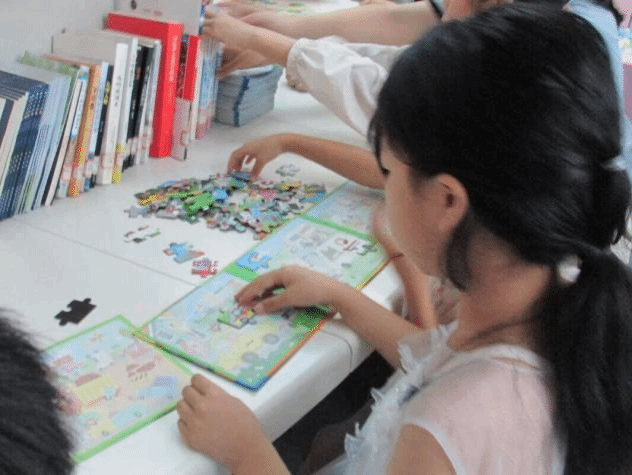 活动现场,五彩斑斓的拼图与丰富多彩的书籍交相辉映,不仅为孩子们带来了视觉上的盛宴,更在心灵深处种下了探索与求知的种子。志愿者们与小朋友们共同沉浸在知识的海洋中,享受着这段难忘的时光。活动现场,色彩斑斓的拼图与书香四溢的书籍交织成一幅温馨的画面。小朋友们或沉浸在拼图的乐趣中,用一块块碎片拼凑出心中的世界;或围坐在大学生志愿者身边,共同阅读、互相分享的书籍中的故事,眼神中闪烁着对知识的渴望与对未来的憧憬。