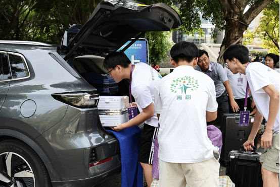 迎新现场,教师们头顶炎炎烈日,脸上挂满汗珠,接过沉甸甸的行李箱,帮助新生将一件件行李整齐装车,一路转运至宿舍楼接待点。原本步行需要20分钟的路程,不到2分钟就到达了。运送途中,教师志愿者主动为新生讲解大学生活,帮助新生尽快熟悉校园环境,让新生真正感受到智汽学院大家庭的温暖。热情的服务,贴心的行动让2024级新生倍感亲切,纷纷为学院和老师们点赞。一位刚办理完入学手续的新生开心说道:“炎炎烈日下,一进校门就有志愿者热情迎接。当看到迎新点还有老师专门开车带着自己报道、运送行李,让我倍感惊喜,也瞬间爱上了自己的大学。”在一旁的家长也表示,自己从广西过来送孩子上学,老师们热情周到的服务让她对孩子未来的大学生活充满期待。