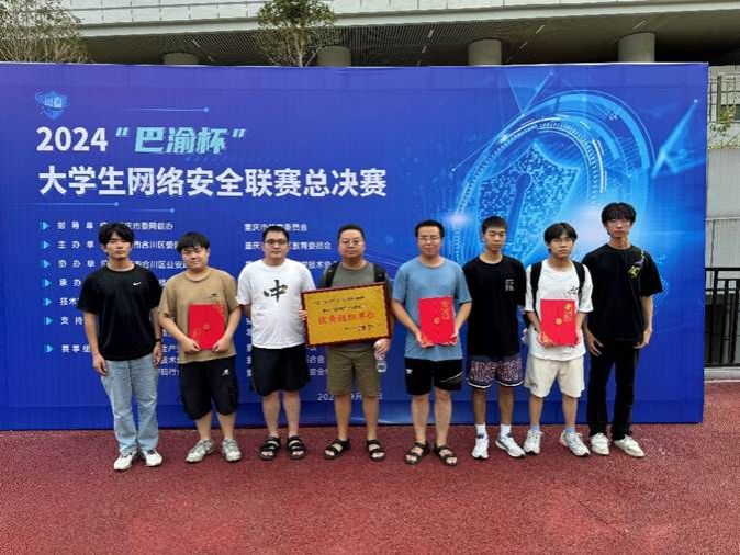 2024年9月26日,“巴渝杯”大学生网络安全联赛决赛在合川区重庆人文科技学院落下帷幕。由我院青年教师黄将诚、罗攀指导的晋级决赛队伍noob(参赛学生:江傲、熊朝政、孙忠亮)、test(参赛学生:杨鑫、张宇航、蒋伟)在此次大赛中表现突出,分别获得一等奖和二等奖,我校也获得“优秀组织单位”荣誉。
