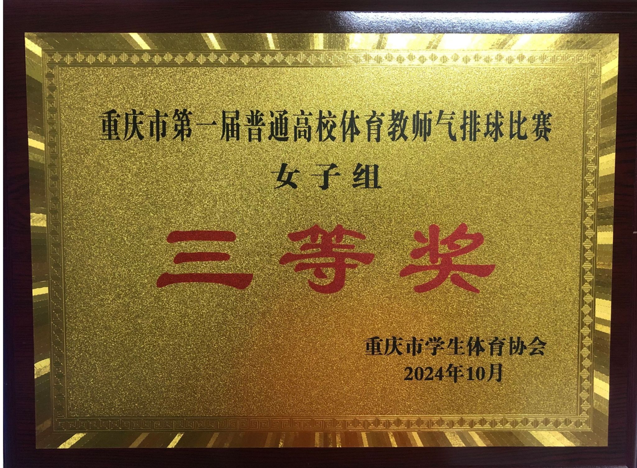 2024年10月18-20日,重庆市首届普通高校体育教师气排球比赛在重庆文理学院举行。部门领导高度重视,分别组建了男、女气排球队参加本次比赛。最终女子代表队获得本次赛事三等奖。