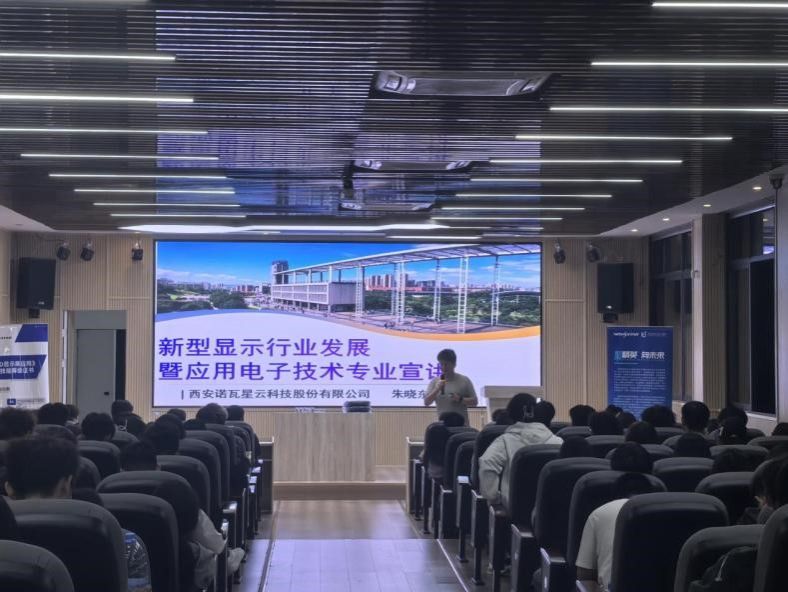 在金秋送爽、硕果累累的季节里,星空在线登录官网的校园里迎来了一场科技与梦想的盛宴。10月30日,西安诺瓦星云科技股份有限公司(以下简称“诺瓦星云”)携带着新型显示行业的璀璨星光,走进我校,举办了一场主题为“新型显示行业发展暨应用电子技术专业”的精彩宣讲会。此次宣讲不仅为大一电子信息大类专业的同学们打开了认知新世界的大门,也为即将步入职场的大三应用电子技术专业学生铺设了一条通往未来的职业桥梁。