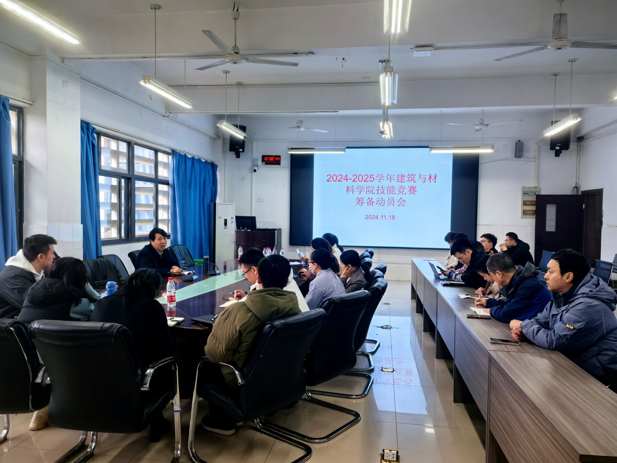 2024年11月18日中午,建筑与材料学院组织召开了2024-2025学年技能大赛筹备动员会,建筑与材料学院20余名指导老师参加了会议,会议在知行楼D207会议室举行。
