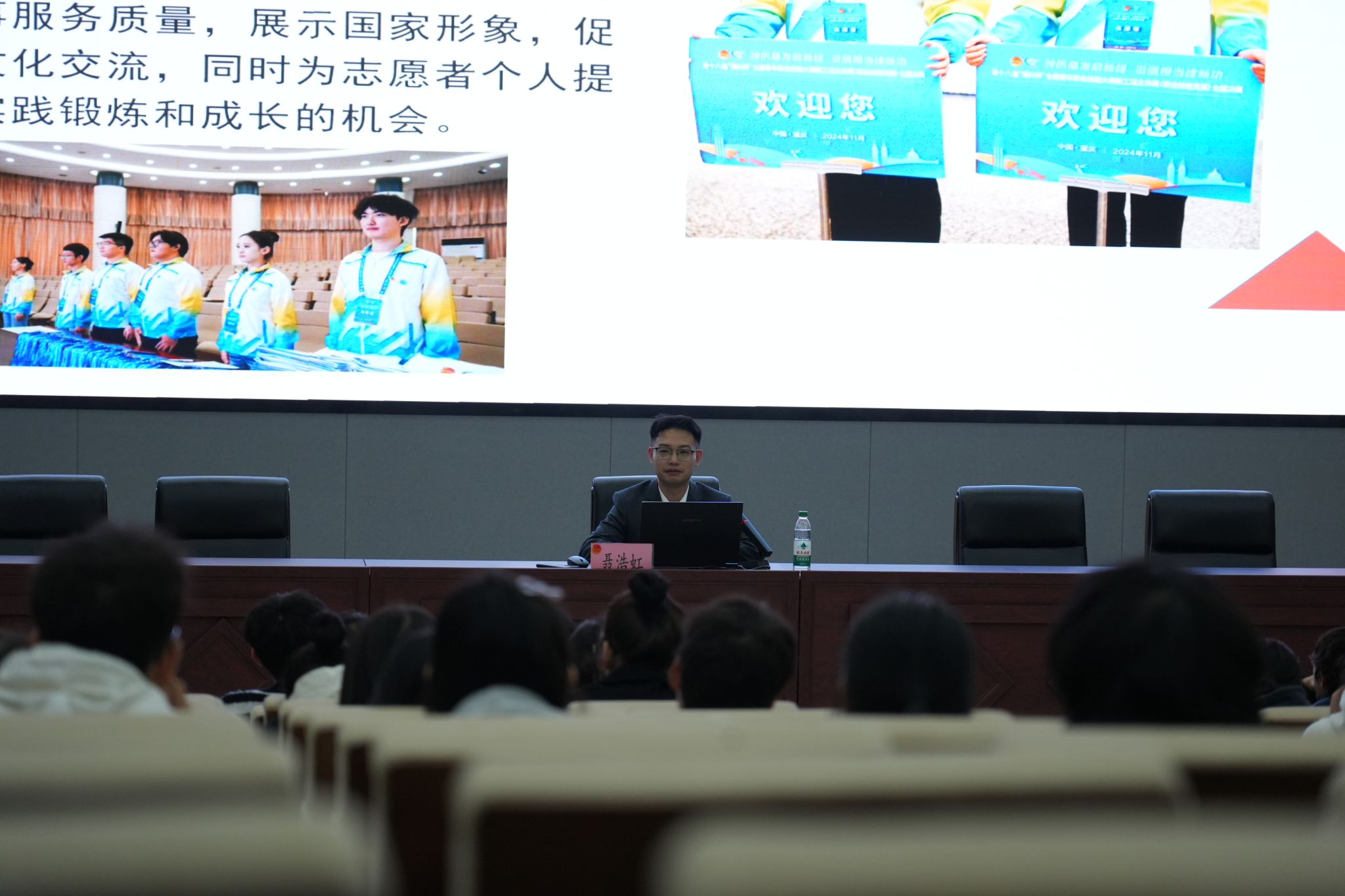 校团委兼职副书记、电子与物联网学院团总支书记聂浩虹以《献血与赛会志愿服务工作展示》为题,通过具体实例介绍了我校主要开展的志愿服务活动以及在志愿活动中具体该怎么做。聂老师谈到,我们广大青年要积极参与到志愿活动中来,充分认识到志愿活动的意义,用自己的实际行动为社会贡献力量。
