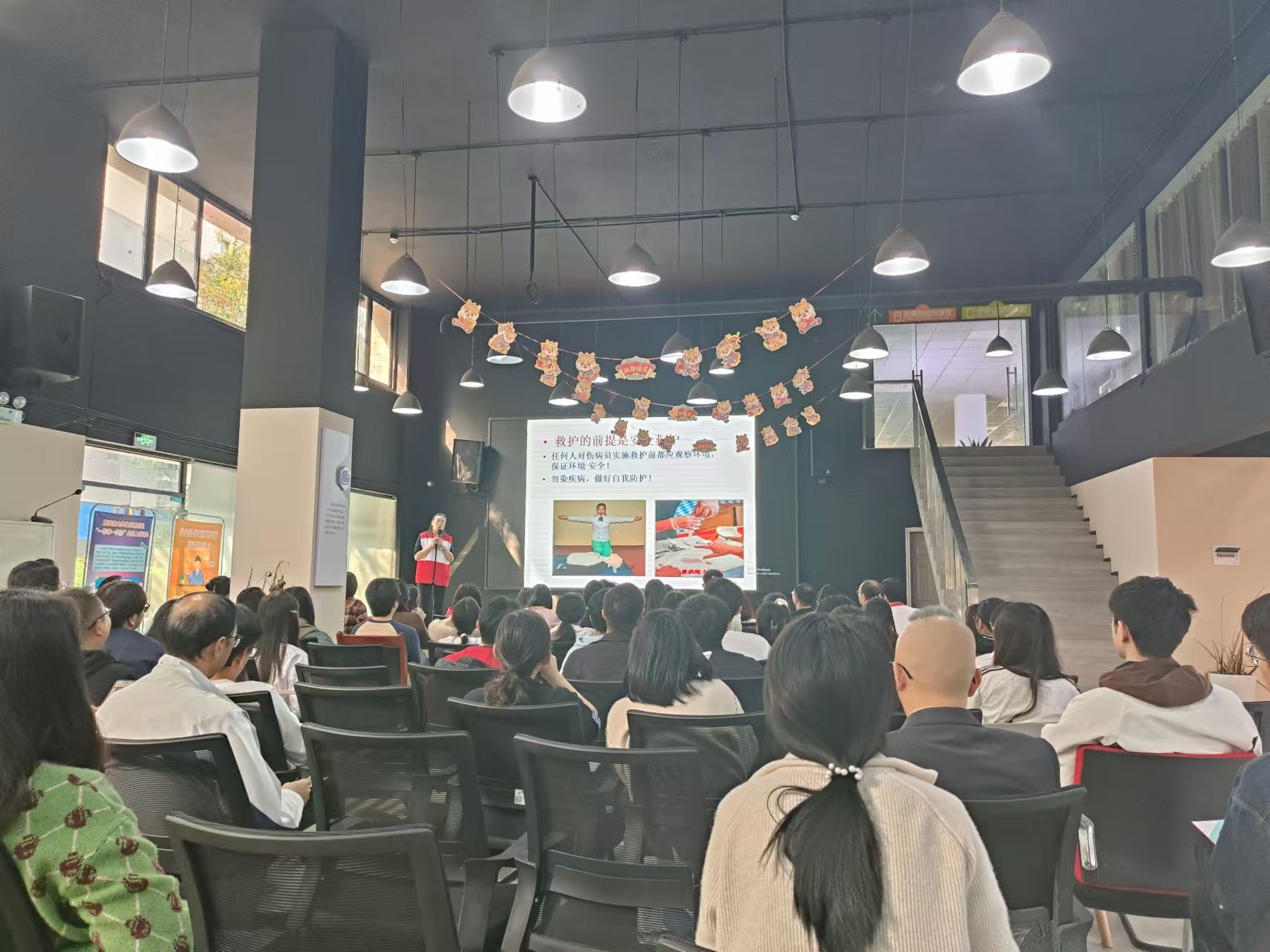 2024年11月14日,后勤保障处特邀请重庆市红十字会培训师到我校众创空间一楼大厅,为我校90名师生开展应急救护培训及《心肺复苏(CPR+AED)培训证书》考核。
