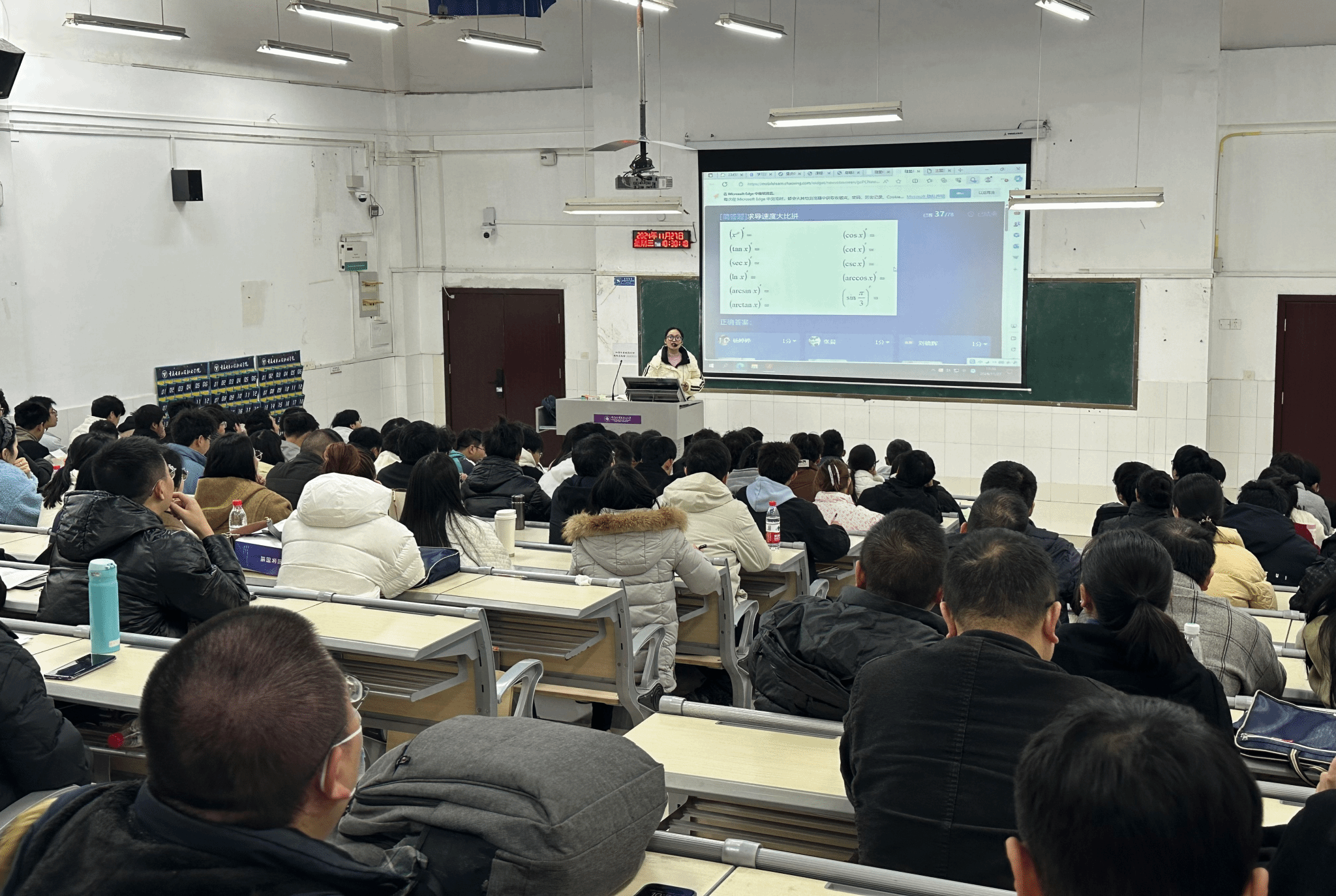 在南门,全体学员合影留念。之后,大家来到博德楼B111教室,现场观摩了陈家利老师的数学公开课。陈老师以其深入浅出的教学方法和生动有趣的课堂氛围,赢得了学员们的一致好评。