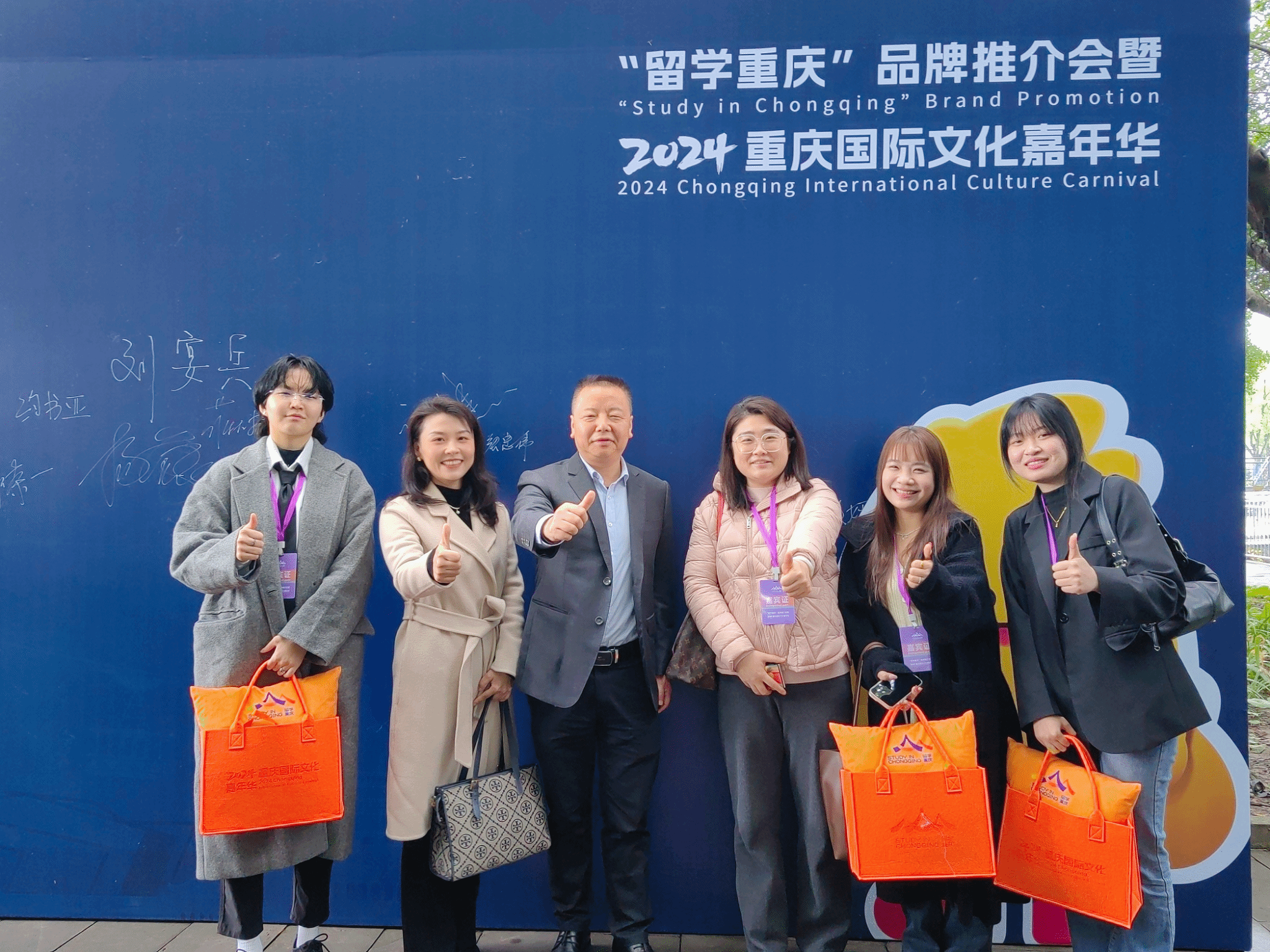 2024年12月6日,由重庆市教育委员会、中共重庆市委宣传部、重庆市人民政府外事办公室指导的“留学重庆”品牌推介会暨2024重庆国际文化嘉年华活动在西南政法大学开幕。学校副校长刘洪光、国际交流与合作发展处副处长刘影、留学生辅导员刘凤梅以及蒙古留学生奥奇卡、老挝留学生洪婉彤和越南留学黄天竺受邀参加。