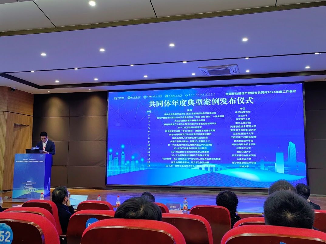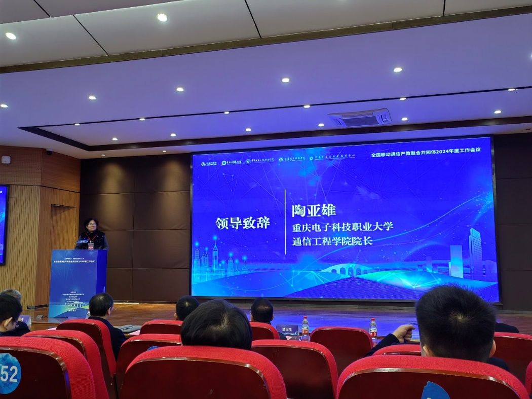 2024年12月7日上午,我校联合中信科移动通信技术股份有限公司、电子科技大学、武汉职业技术学院、重庆市立信职业教育中心主办全国移动通信产教融合共同体2024年度工作会议。会议以“深耕产教融合,培育新质生产力人才”为主题,旨在探讨和推进移动通信领域教育与产业深度融合的新路径,共同培育适应未来行业需求的高素质技能型人才。国家职业教育咨询指导委员会委员潘海生教授、电子科技大学通信与信息系统国家级实验教学中心主任凌翔教授、重庆工程学院电子信息学院院长何世彪教授、天津职业技术师范大学电子工程学院院长李士心教授、中信科移动行业信息化事业部副总经理方敏、我校通信工程学院院长陶亚雄教授、副院长刘良华教授等全国各地的教育界与产业界代表90余人参加会议,会议由中信科移动行业信息化事业部教育业务总监孙中亮主持。