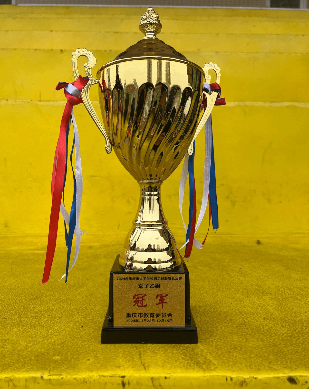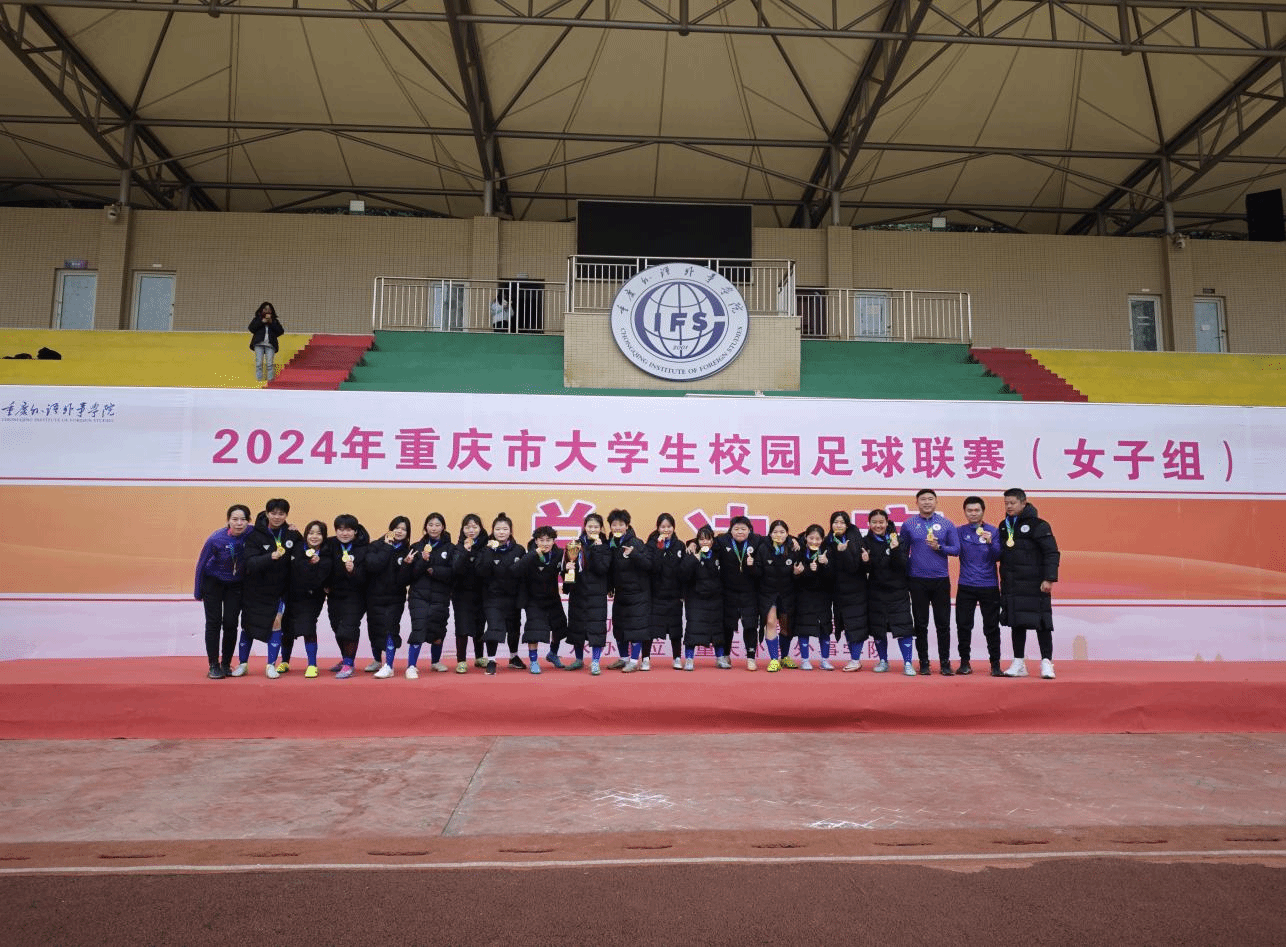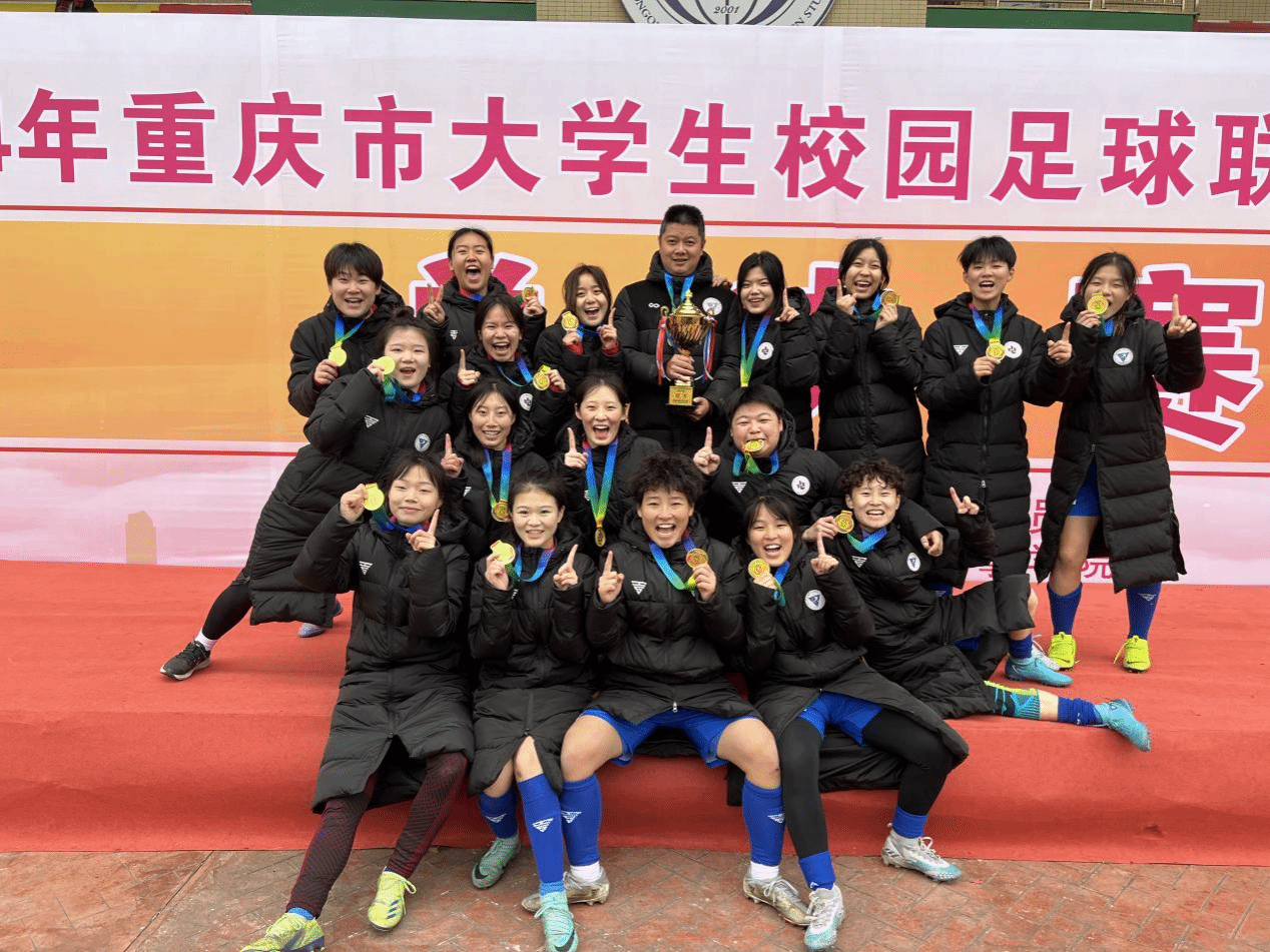 2024年12月20日下午,历时13天的2024年重庆市大学生校园足球联赛(女子组)总决赛在重庆外语外事学院落下帷幕,在学校领导和部门领导的关心和支持下,我校女子足球代表队由体育与国防教学部老师蒋艺、韦泽泽带队参加女子乙组比赛,经过4 场激烈的淘汰赛,女子足球代表队不辱使命夺得本次比赛冠军,并且将代表重庆高校出征2025年全国大学生校园足球联赛。