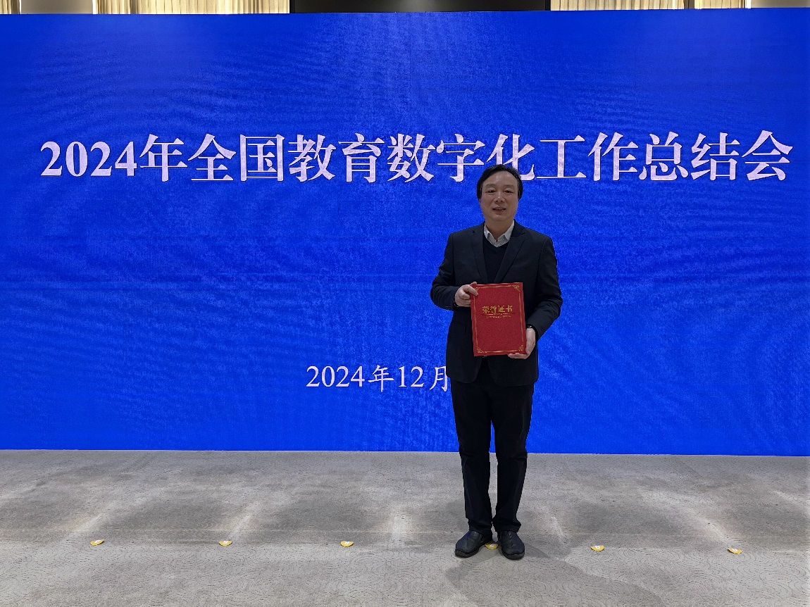 12月27日,教育部召开2024年全国教育数字化工作总结会,我校武春岭教授作为2024年全国优质数字资源提供代表赴北京参加了会议,并接受吴岩副部长颁发的“数字资源收藏证书”。