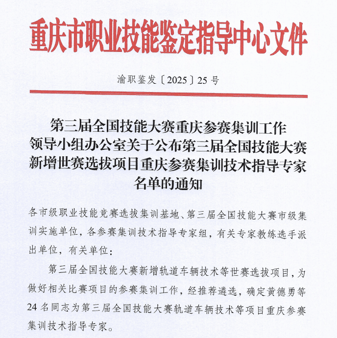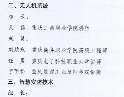 近日,重庆市职业技能鉴定指导中心公布了第三届全国技能大赛新增世赛选拔项目重庆参赛集训技术指导专家名单。我校3名教师凭借扎实的专业背景与丰富的技术经验入选技术指导专家。其中武春岭教授获选智慧安防技术项目组长,路立勋获选智慧安防技术项目成员,任勇获选无人机系统项目成员。