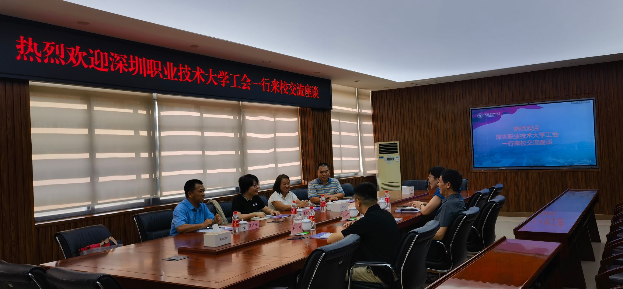 2025年7月14日上午,深圳职业技术大学工会曹方蓝、何粟、许春华、吴广生一行来我校调研交流,工会负责人王永中、工会办公室刘涛、金敉娜参加座谈交流。