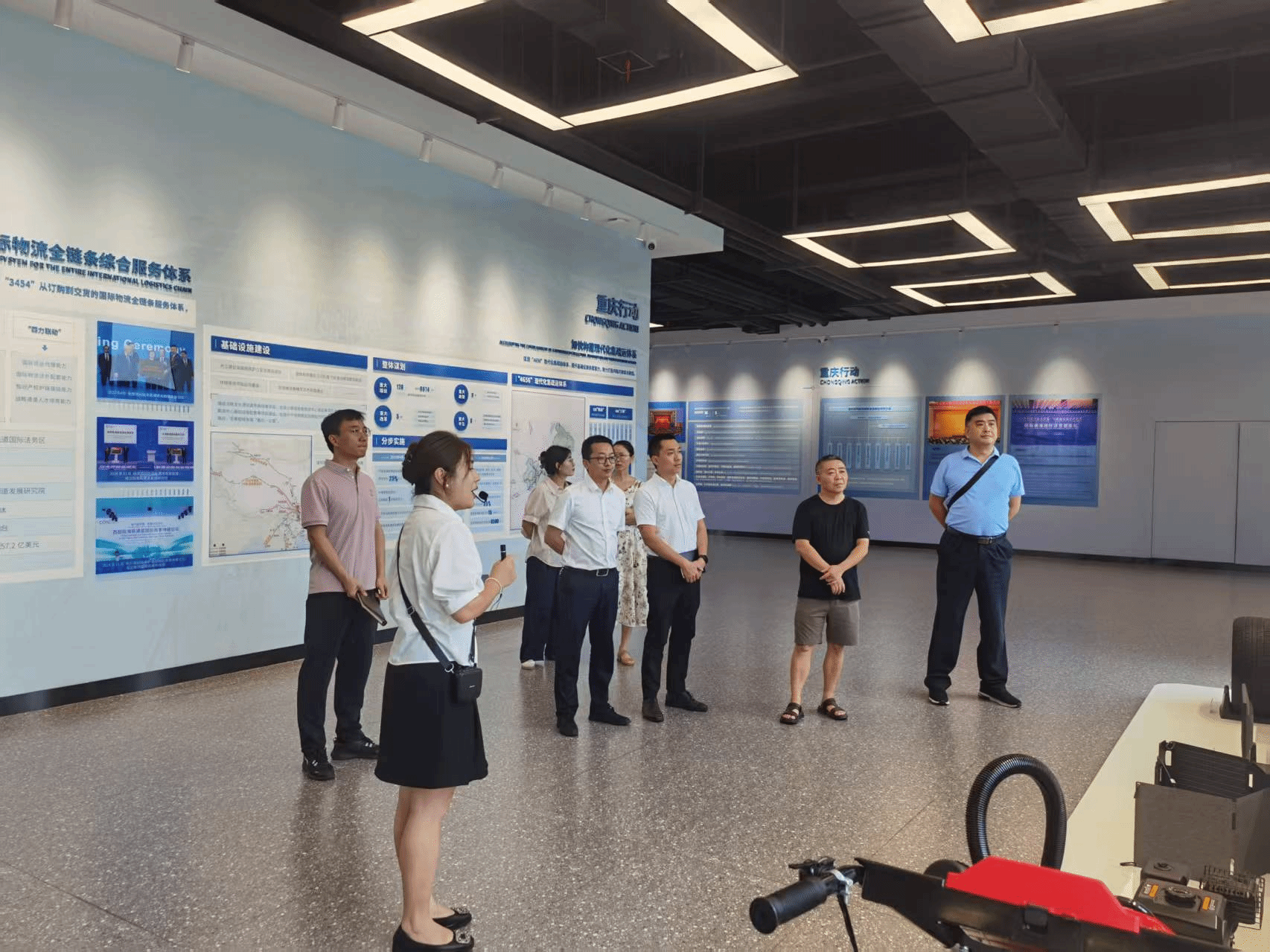 在陆海新通道运营有限公司,学院一行人首先参观了西部陆海新通道运营展示大厅、西部陆海新通道运营调度中心,随后双方就“陆海新通道运营人才需求与校企合作”展开座谈。座谈会上,双方围绕物流产业发展、物流运营成本控制、跨境电商业务发展、新型智库建设和现代电商物流星空(中国)等领域展开深入交流。双方拟依托大数据与人工智能技术、区块链技术、GIS技术、SLAM技术、数字孪生技术等引擎联合打造货物自动化仓储、精益制造流程优化、电商物流数据归集、低空运输分析等应用场景,助力西部电商物流产业的转型升级,支撑西部陆海新通道的建设与发展。
