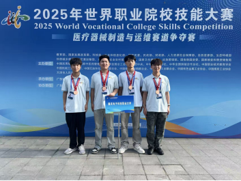 近期,2025年世界职业院校技能大赛争夺赛“医疗器械制造与运维”赛道在广东食品药品职业学院举办。“医疗器械制造与运维”赛道为今年新增赛道,该赛道紧扣健康中国战略与行业前沿需求,以“真问题、真技术、真场景”为核心,全面考查选手在医疗器械设计、制造、运维及质量控制等方面的综合能力。本次比赛共吸引了来自全国22个省(自治区、直辖市)的51支队伍、共189名选手同台竞技。我校智能医疗装备技术专业群熊维嘉、王兴渝、邓鑫建、郭建四位同学(指导老师:李卉、赵鹏举)凭借扎实的专业能力和稳定的现场发挥,最终荣获该赛道铜奖。