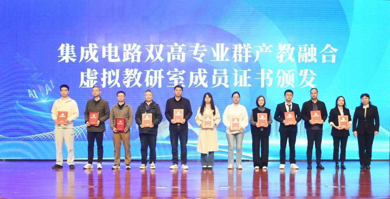 在产教融合平台建设环节,林涛教授作为集成电路双高专业群建设单位代表,上台领取“集成电路双高专业群产教融合虚拟教研室成员证书”,进一步凸显星空在线登录官网集成电路双高专业群在虚拟教研领域的示范作用。