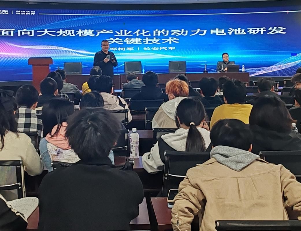 11月22日下午,由科研与社会服务处主办,智能制造与汽车(航空)学院承办的“重电大讲堂”2025年第19期学术讲座在致远楼203举行,特别邀请了深蓝汽车动力平台中心副总经理、正高级工程师邓柯军为主讲人,以“面向大规模产业化的动力电池研发关键技术”为主题,开展了一场精彩的学术讲座,为校企学术交流搭建了优质平台。