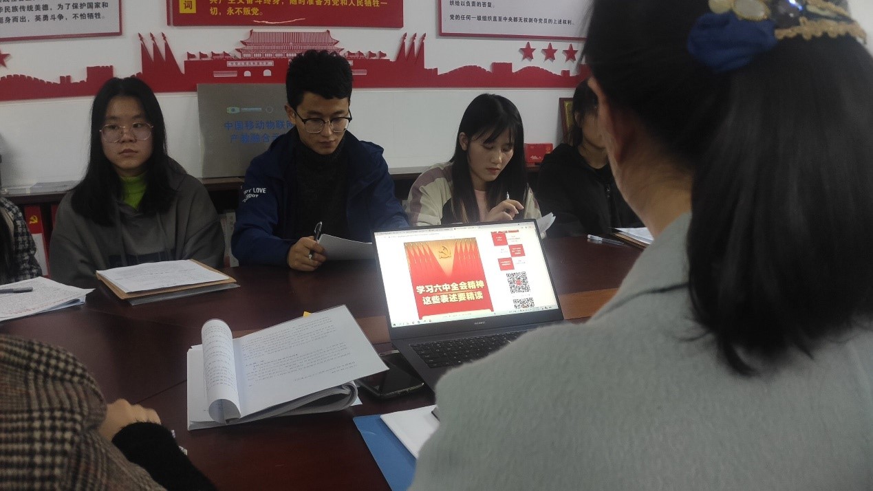 支部书记徐欣表示:恰逢党的百年华诞,十九届六中全会承前启后、继往开来,全会通过的历史性决议意义重大、影响深远,充分体现了以习近平同志为核心的党中央伟大的历史主动精神、宏阔的历史视野、清醒的历史自觉、坚定的历史担当,向全党发出了以史为鉴、开创未来、不懈奋斗、接续赶考的动员令。对历史的最好纪念,就是创造新的历史。我们将切实把思想和行动统一到全会精神上来,以高度的政治自觉抓好决议的学习宣传贯彻,更好汲取精神伟力,弘扬伟大建党精神,传承“十个坚持”宝贵经验;更好凝聚实践伟力,奋力谱写新时代支部高质量发展新篇章;更好汇集学院师生力量,同全体师生一道创造更美好生活、开创更伟大事业;更好激发奋斗伟力,以更大的决心和勇气抓好党的自身建设,在新时代赶考中交出新的优异答卷!