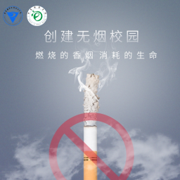 请同学们遵守学校规章制度,绝不在校内所有建筑物内(包括学生宿舍、教学楼、实验实训楼、办公楼、图书馆、食堂、体育馆等,及其楼道、卫生间等)、校内人流密集的室外公共区域(运动场、广场和主要人行干道)吸烟!不在校园内公共区域乱扔烟头、乱抖烟灰!向家人和朋友们宣传吸烟的危害,树立和展示新时代大学生良好的精神面貌、创造美好无烟校园。