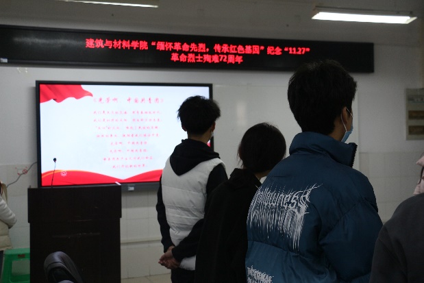 为坚定理想信念、缅怀革命先驱、赓续红色血脉、传承革命精神,建筑与材料学院开展了“纪念11.27革命烈士殉难72周年”系列活动。