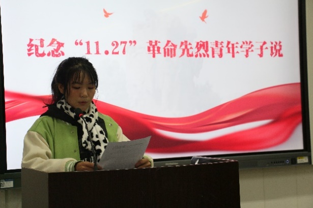 11月27日上午,建筑与材料学院师生在6202进行了“缅怀革命先烈,传承红色基因”纪念“11.27”革命先烈殉难72周年观影及演讲活动。在进行了观影活动之后,在场观影的同学积极踊跃地进行了“纪念11.27革命先烈青年学子说”演讲,并在活动结束后分享了观后感。