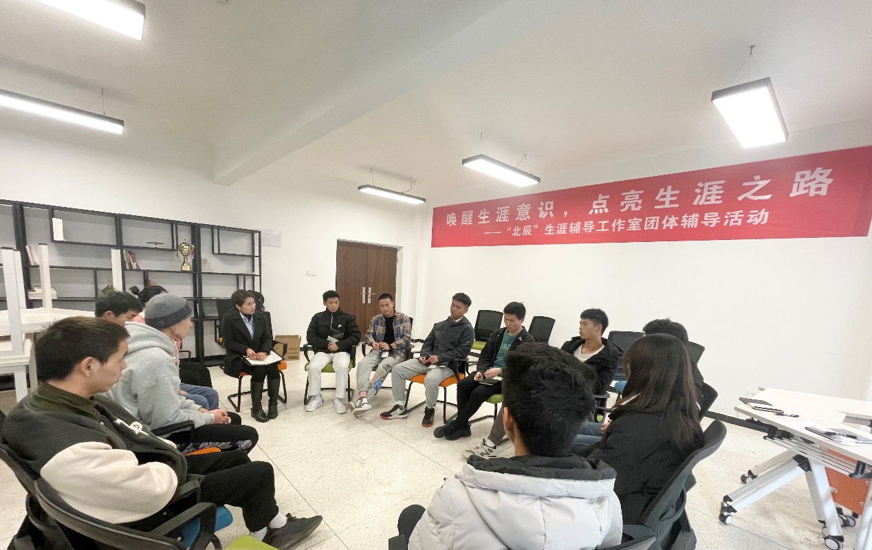 2021年11月25日下午,由智能制造与汽车学院“北辰”生涯辅导工作室举办的第一期团体辅导活动在北区18栋“北辰”生涯团辅室顺利开展。团体辅导活动共举行六期,本期主题为“缘来是你”,活动由智能制造与汽车学院辅导员周春霞老师、谭周琴老师指导,来自2021级不同专业的12名同学参与了活动。