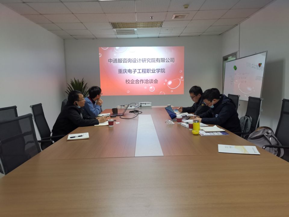 11月8日下午,我校通信工程学院通信应用系林勇主任一行4人到中通服咨询设计研究院重庆分公司调研并商讨校企合作事宜,中通服咨询设计研究院重庆分公司总经理张传达、副总经理郭天科一起参加会谈。