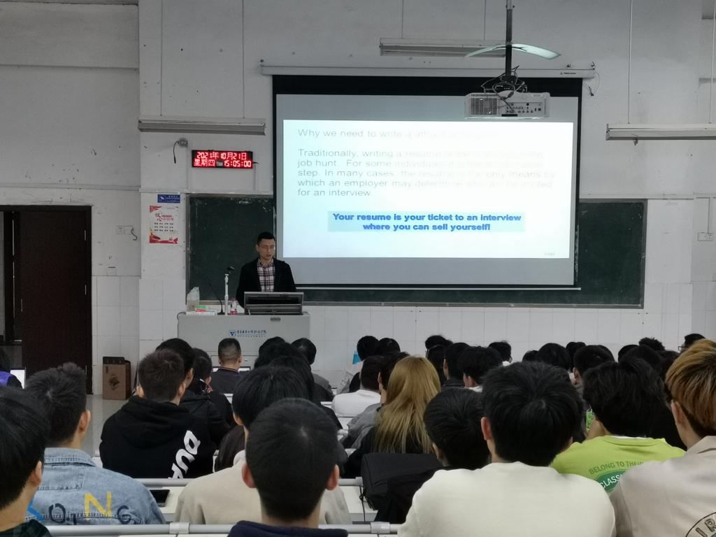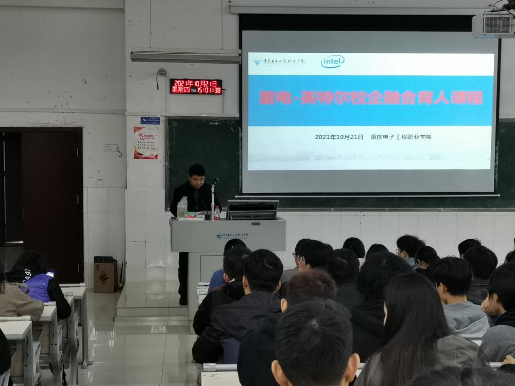10月21日,电子与物联网学院联合集成电路全球龙头企业Intel公司在7-206展开校企融合课程《学生职业生涯指导与分享》(双语)讲授。我院微电子技术专业共130余名学生参加本次课程。