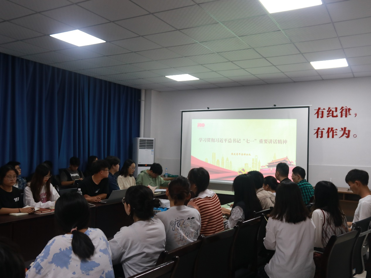百年大党,继往开来再出发。10月8日,为深入学习贯彻习近平总书记“七一”重要讲话精神,推动党史学习教育,人工智能与大数据学院青年讲师团于14-108活动室展开了专题宣讲活动。
