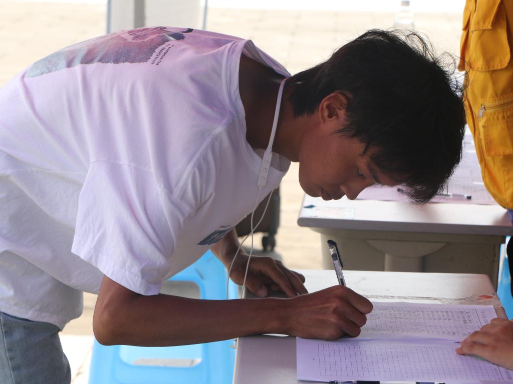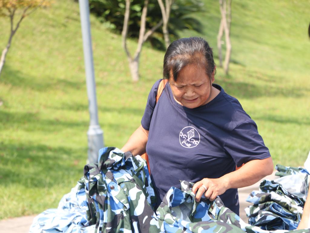 30日上午,刚刚结束军训的新生们在了解到我们的活动后,三五成群地将迷彩服拿到了我们活动点进行捐赠。储存衣物的帐篷渐渐被蓝衣填满,烈日炎炎下志愿者们细心地整理着这些衣物。面对前来领取衣物的叔叔阿姨,志愿者们也充满耐心,直到为他们找出合适的尺码。